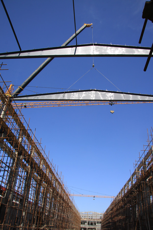 為確保實(shí)現(xiàn)年度目標(biāo),公司開展了施工生產(chǎn)百日會戰(zhàn)活動。9月10日,在牡丹江恒豐紙業(yè)1.7萬噸圣經(jīng)紙工程廠房現(xiàn)場,呈現(xiàn)出一派繁忙的施工景象,廠房內(nèi)墻體砌筑和設(shè)備基礎(chǔ)正在抓緊施工。項(xiàng)目負(fù)責(zé)人丁一介紹說,這個(gè)項(xiàng)目我們是總承包,廠房建筑面積1.3萬平方米,三層框架結(jié)構(gòu),今年四月份開工,現(xiàn)在廠房已經(jīng)完成60%的工程量,今天開始吊裝鋼屋架,預(yù)計(jì)5天可以吊完。我們現(xiàn)在已經(jīng)倒排工期,在保證質(zhì)量的前提下,千方百計(jì)搶進(jìn)度,確保創(chuàng)省優(yōu),力奪“龍江杯”質(zhì)量獎(jiǎng),向業(yè)主遞交一份滿意的答卷。